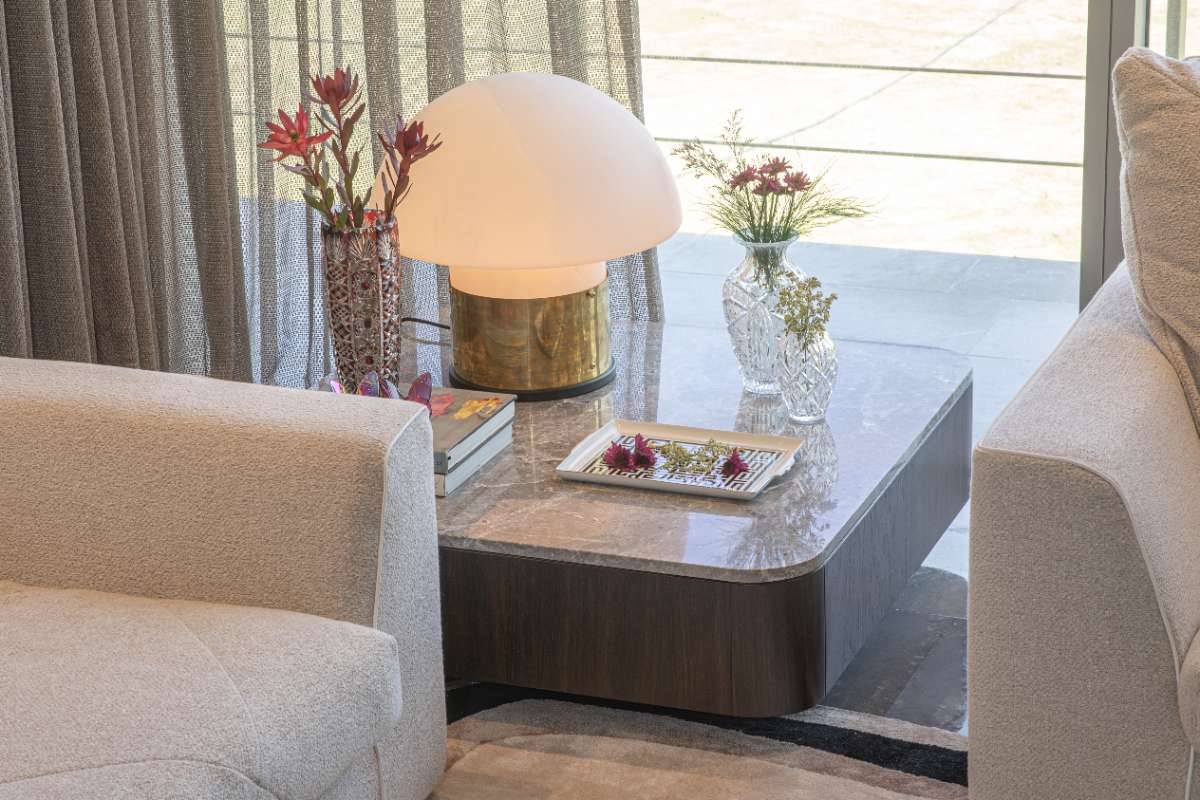 La selección de acabados y colores permite personalizar el Bife Lecco, desde opciones vibrantes y audaces hasta tonos neutros que se integran discretamente en ambientes más sobrios. Sus patas de acero, disponibles en diferentes terminaciones, junto con la cubierta embonada en mármol, completan un diseño que combina con maestría elegancia, textura y variedad.