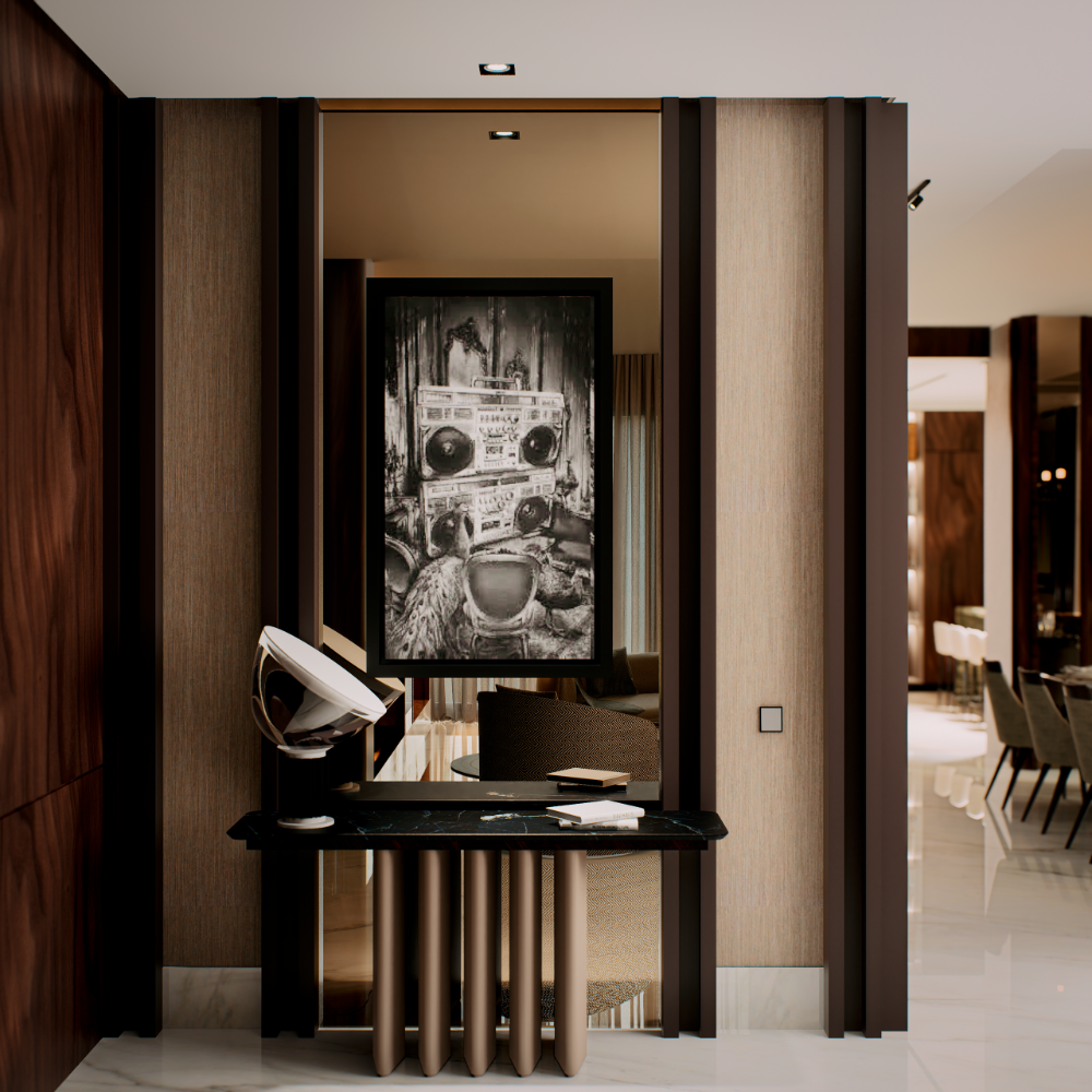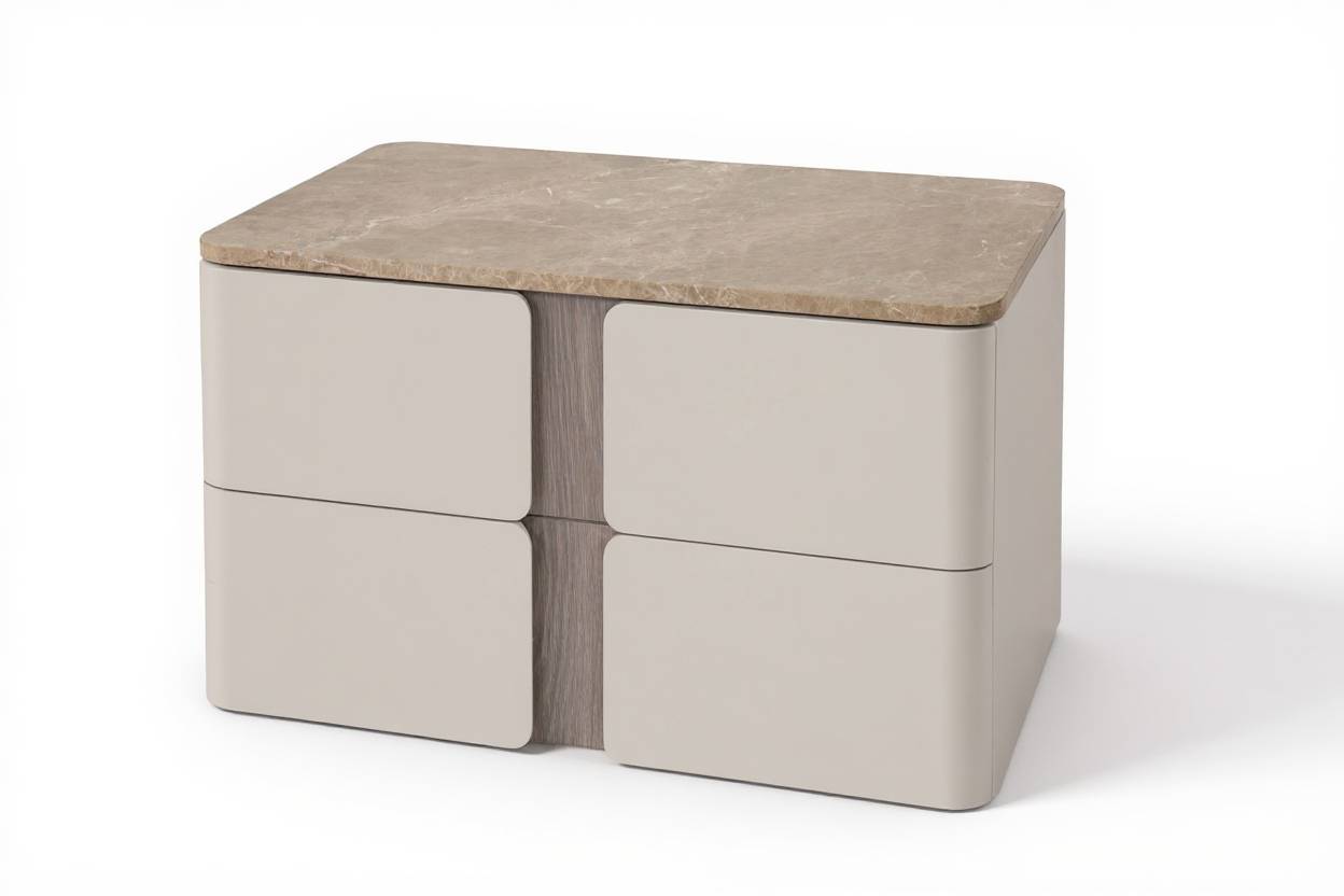 El diálogo entre el lacado, la calidez de la madera chapillada y la sofisticación del mármol da como resultado una pieza de estética atemporal y estilo neutral. Gracias a esta versatilidad, la Consola Erba puede integrarse fácilmente en ambientes clásicos o contemporáneos, manteniendo su vigencia y atractivo a lo largo del tiempo.