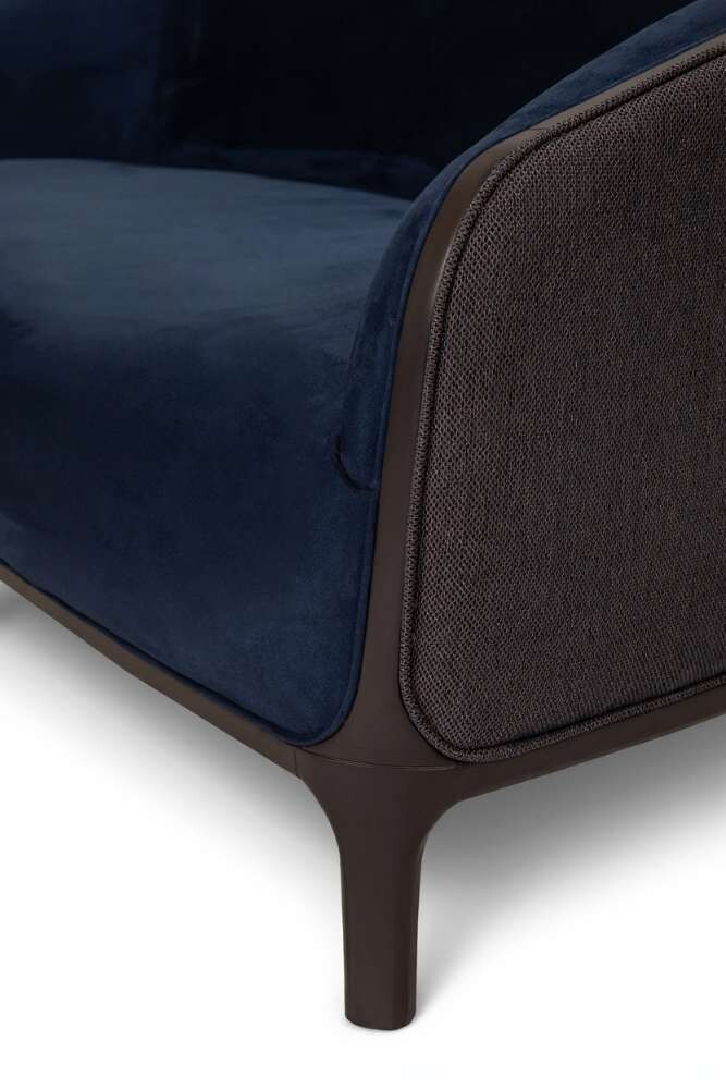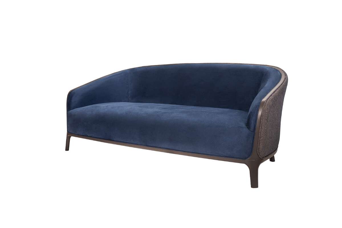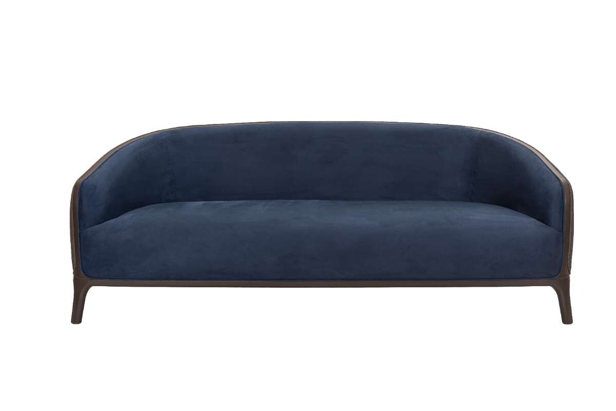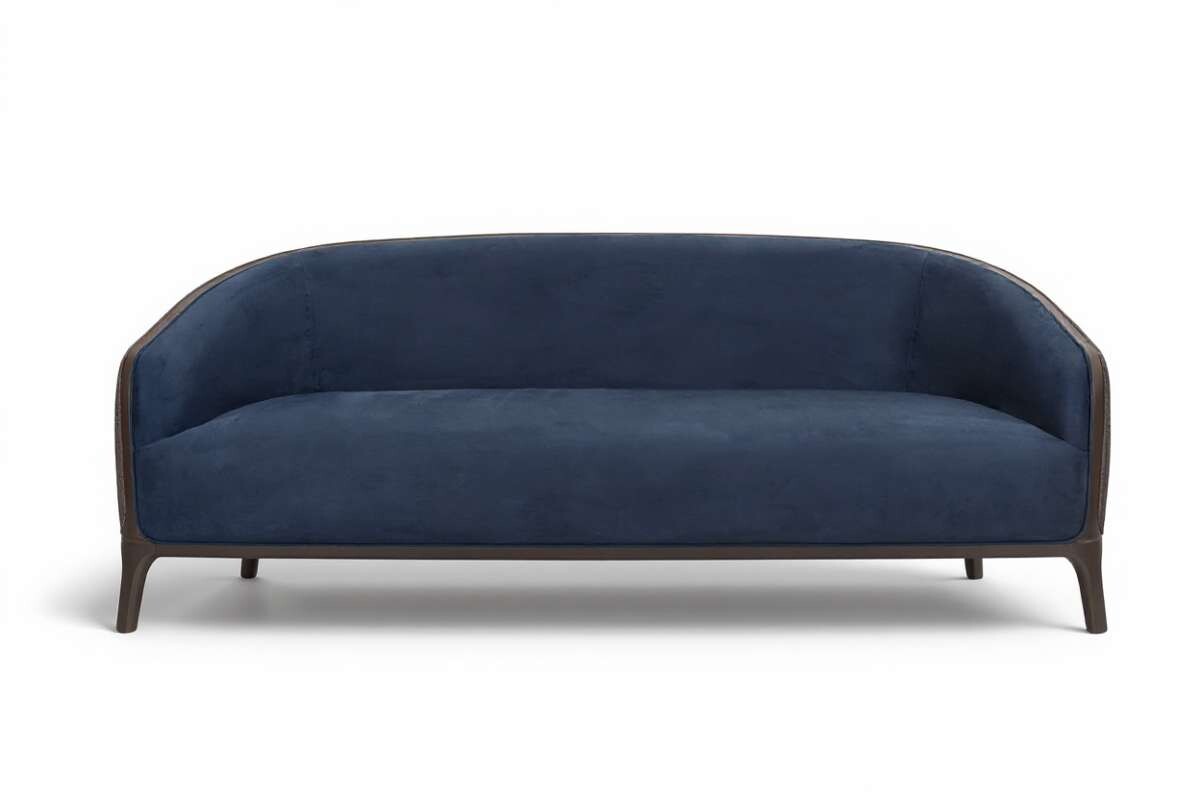 El sofá Rimini combina la elegancia clásica con un confort acogedor, definido por su silueta envolvente que abraza al usuario. Su rasgo distintivo es el borde continuo de madera que recorre todo el contorno del respaldo, emergiendo de manera fluida desde la base. Este detalle refinado no solo añade definición y elegancia, sino que también crea una sutil división visual que aporta equilibrio y armonía al diseño.